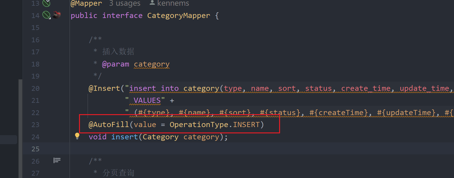 在Mapper的方法上加入AutoFill注解
